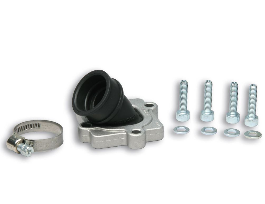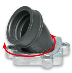 Diese neuen Malossi-Saugrohre werden ohne Montage bereitgestellt: der Mantel kann innerhalb des Rings gedreht werden, um den spezifischen Anforderungen des Fahrzeugs gerecht zu werden und so den besten Winkel für die Montage des Vergasers zu bestimmen.