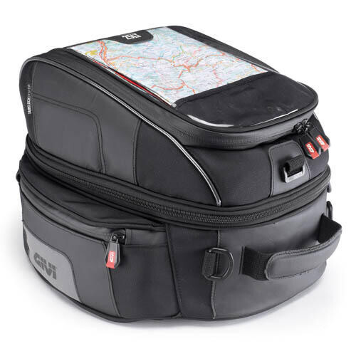 Die Givi XS306Y ist eine Überlasttasche mit einer Kapazität von 25 Litern, einem Tanklock-Anlege-System und einer halbrigiden Konstruktion.