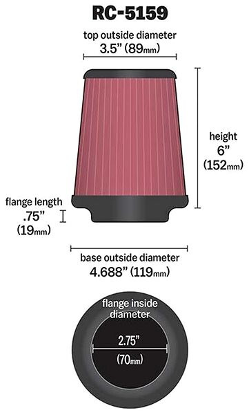 Luftfilter K&N Gummi Durchmesser 70 mm