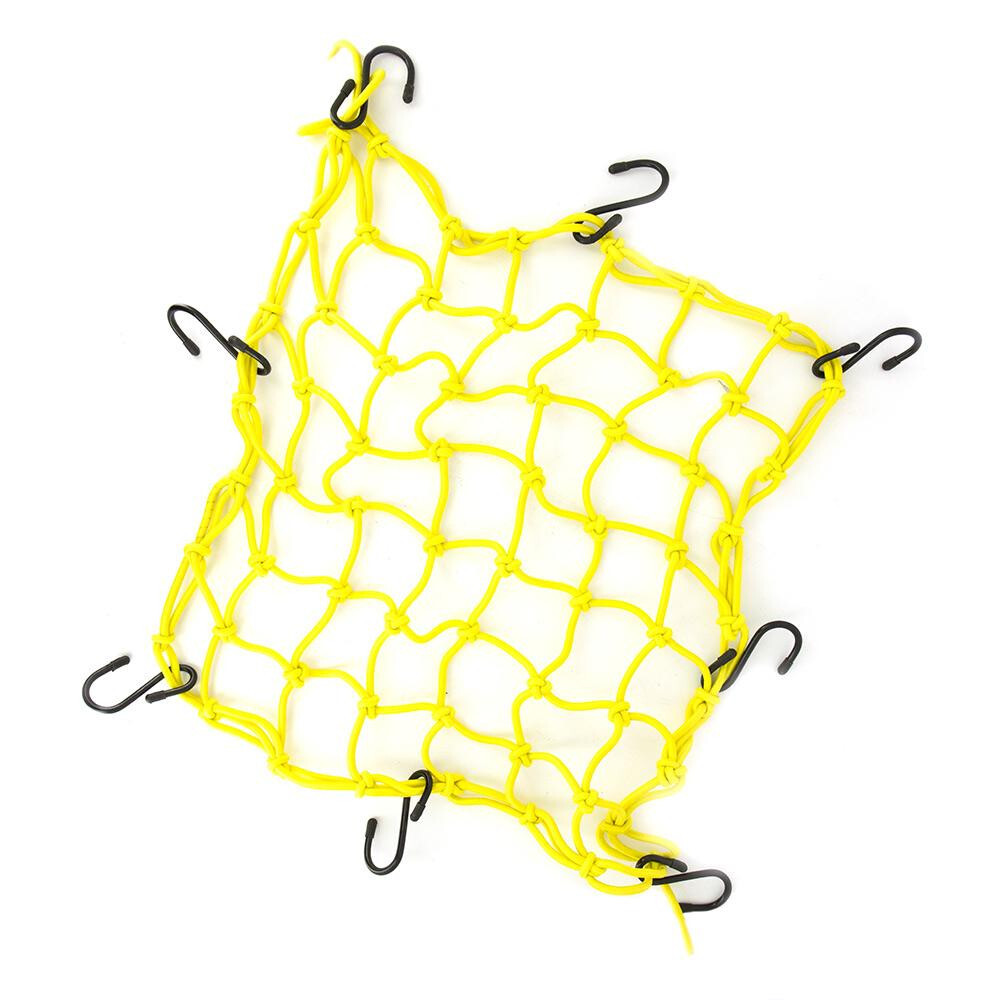 Red oder Oktopus zum Befestigen von Helmern oder leichten Gepäckstücken an unserer Motorrad, wenn wir auf Reisen sind, in gelber Farbe und mit 8 Metallgurten.