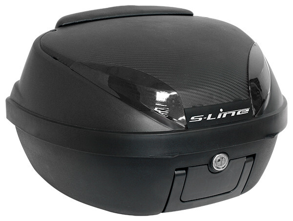 Der 42-Liter-Simil-Carbon-Baumkoffer ist ideal für Motorradfahrer, die einen sicheren und widerstandsfähigen Speicherplatz für ihre Habe suchen, mit Grill, zwei Sets Schlüssel und Rückenlehne.