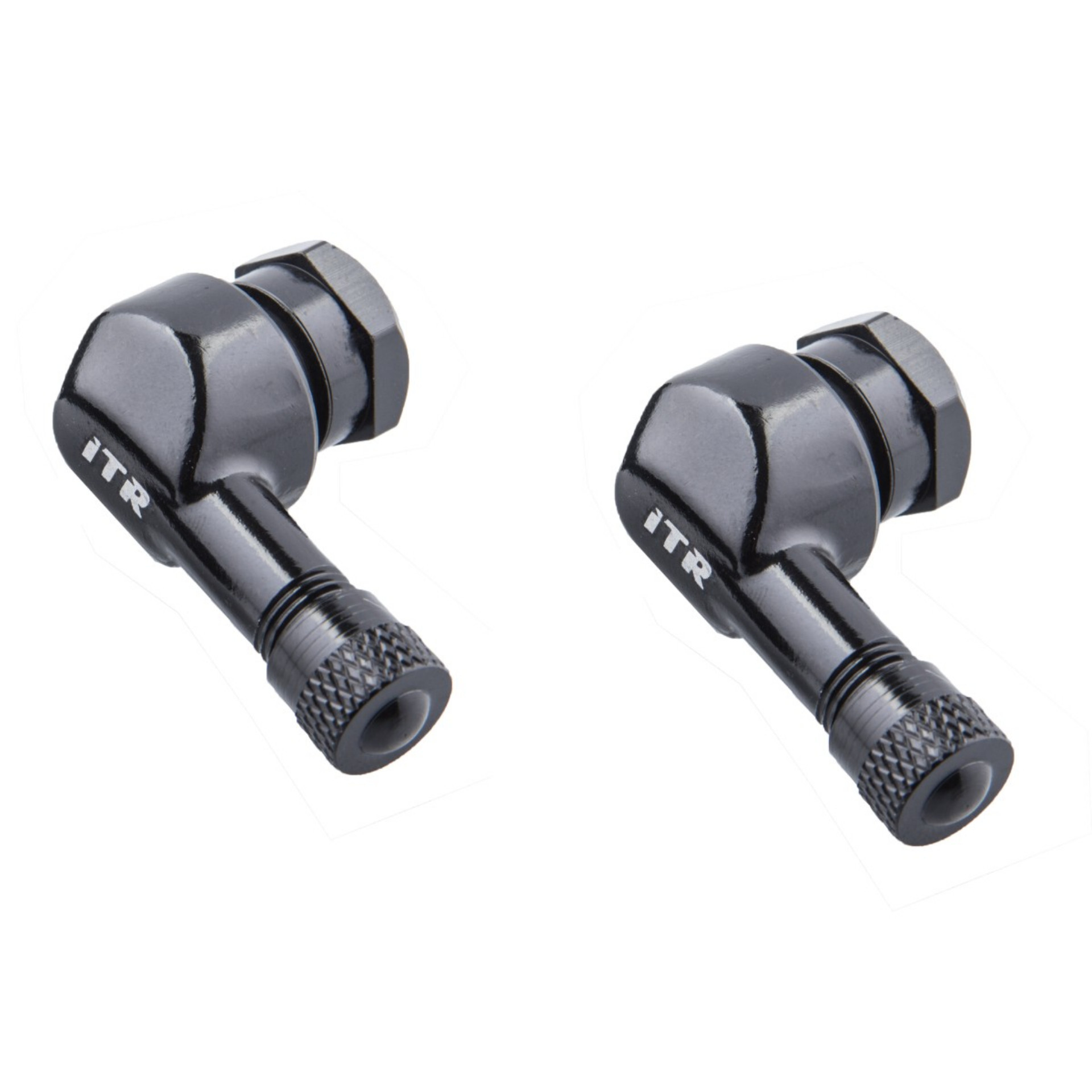 Set mit 2 universellen, schwarzen, abgewinkelten Aluminiumkappen für 11,3-mm-Radventile.