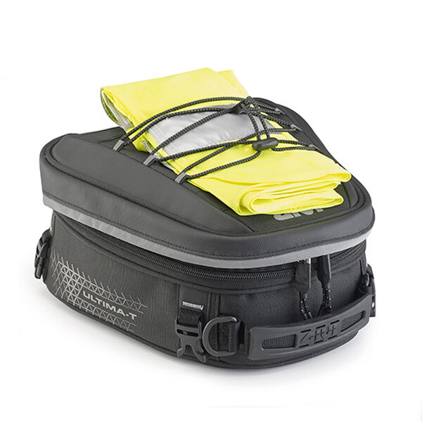 Givi 8-Liter ausziehbare Satteltasche und Gepäckablage.
