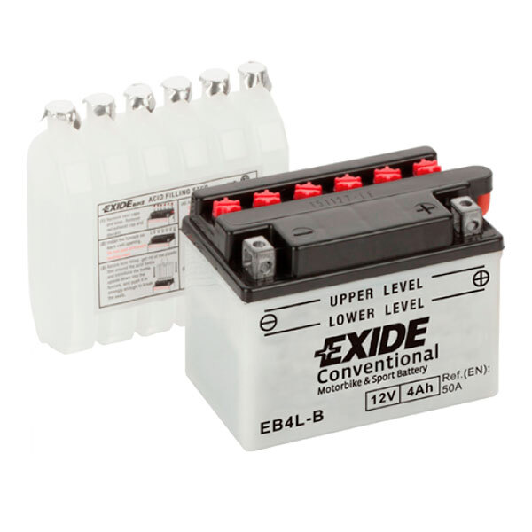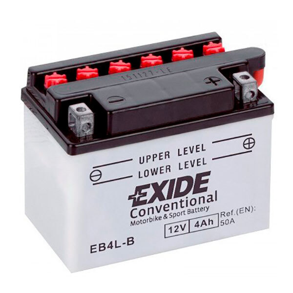 Moto Exide-Akku entspricht dem Yuasa YB4L-B-Akku. Der Akku bietet mehr Leistung, weniger Wartung und eine längere Lebensdauer. Ref EB4LB