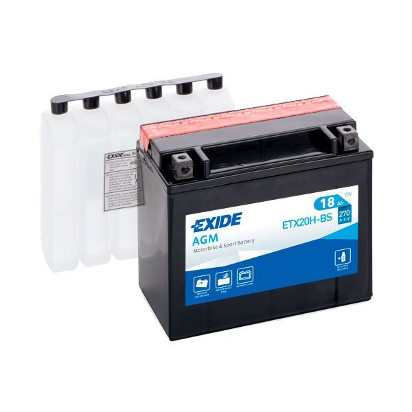 Exide ETX20HBS Batterie, äquivalent zur Yuasa YTX20H-BS, mit AGM-Technologie, bietet eine hervorragende Leistung und Haltbarkeit für dein Motorrad.