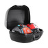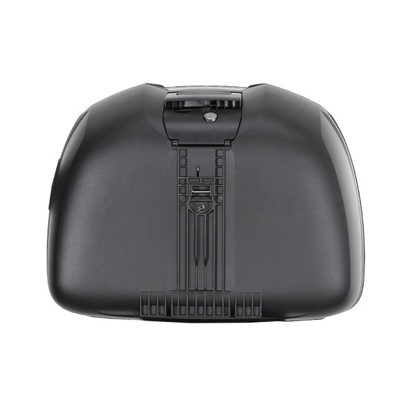 Ein robuster Motorradkoffer aus hochwertigem verstärktem Polypropylen, der die Gegenstände im Inneren vor Regen oder Schnee schützt.