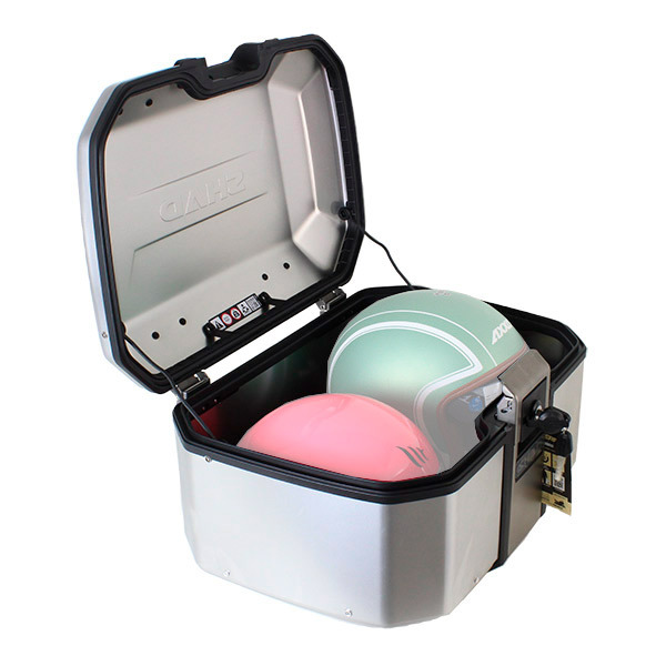 Ein starrer und absolut wasserdichter Motorradkoffer, widerstandsfähig und sicher dank seines Verschlusses aus AISI 304-Stahl.