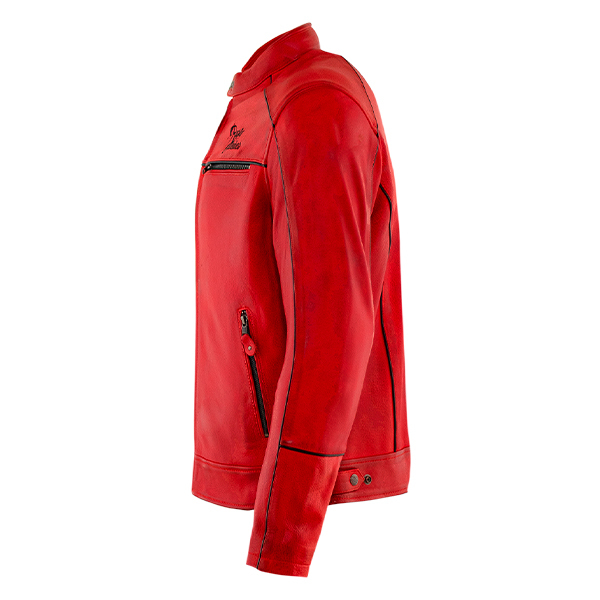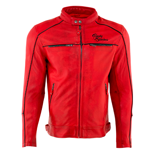 Klassischer Look voller Persönlichkeit. Elegante Leder-Motorradjacke Rusty Stitches Chase. Es hat Belüftungsreißverschlüsse im Frontbereich, um sich an unterschiedliche Wetterbedingungen anzupassen. An Taille und Handgelenken verstellbar.