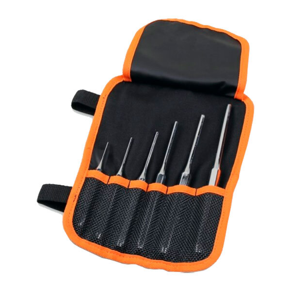 Beta-Sortiment mit 6 zylindrischen Stempeln, aufbewahrt in einem aufrollbaren Polyester-Werkzeughalterkoffer. Ref. 000310024