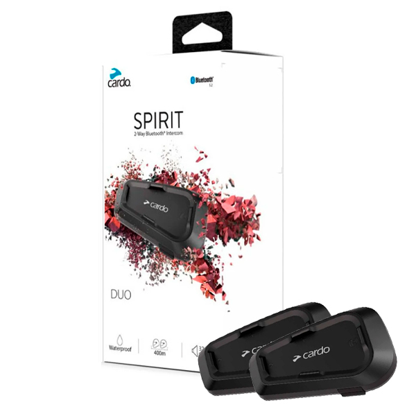 Cardo Spiriti DUO ist mit den meisten Helmtypen kompatibel und absolut wasserdicht , sein Akku bietet eine Reichweite von mehr als 10 Stunden und lässt sich dank Fast Charge-Technologie sehr schnell wieder aufladen. Die perfekte Gegensprechanlage für diejenigen, die lange Reisen oder Wochenenden in einer Gruppe unternehmen, ermöglicht bis zu 2 gleichzeitige Geräte