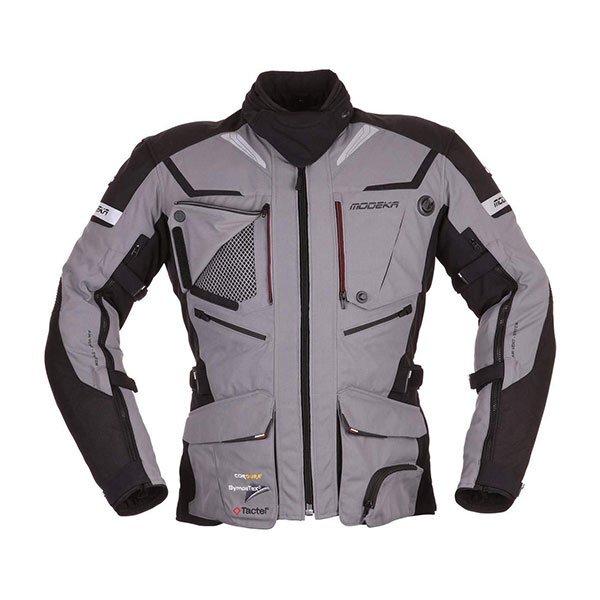 Neuartige Ausführungen für die Cordura Modeka Panamericana Bikerjacke mit herausnehmbarem Thermofutter und Sicherheitsnähten. Zu dieser Motorradjacke gehört auch die abnehmbare Sympatex- Membran (45.000 mm Wassersäule), die zu 100% wasserdicht, zu 100% winddicht und atmungsaktiv ist, wodurch ihre Vielseitigkeit erhöht wird und sie das ganze Jahr über verwendet werden kann.