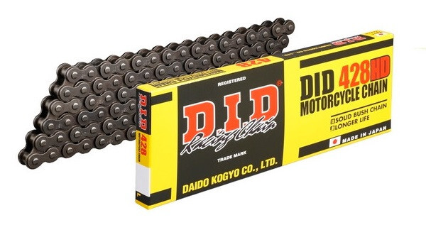 Die DID 428H Motorradkette in Schwarz ist ideal für Motorräder, die Haltbarkeit und Leistung erfordern. Sein robustes Design gewährleistet einen reibungslosen und effizienten Betrieb unter verschiedenen Fahrbedingungen.