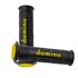 Domino Motorradgriffe Set Modell XM2 in schwarz und gelb, speziell für 22mm Lenker. Diese Manschetten bieten eine weiche Verbindung.