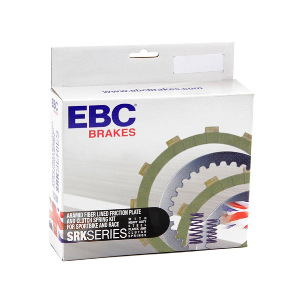 Kit für EBC- Renn- und Sportmotorräder der neuen SRK- Serie, das einen kompletten Satz mit Aramid ausgekleideter Kevlar-Kupplungsscheiben, Hochleistungsfedern mit einem kompletten Satz Distanzplatten aus Stahl enthält.