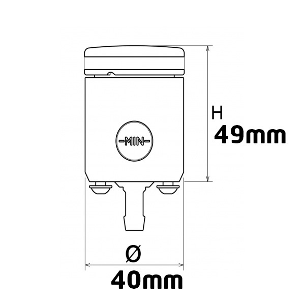 Spezieller Rhizomtank für Bremsflüssigkeit mit einem maximalen Fassungsvermögen von 15 Kubikzentimetern.