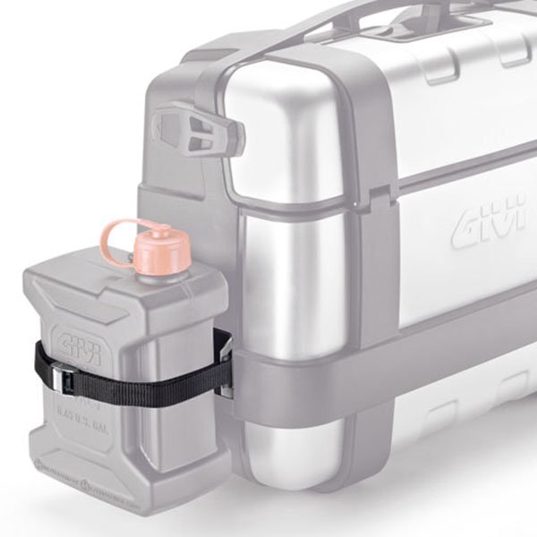 Givi Trekker Koffer viel Zubehör haben, einer von ihnen ist die Unterstützung E149 kleine Dosen von Benzin TAN01 extraible, die auf der Rückseite des Koffers montiert.
