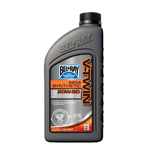 Halbsynthetisches Öl für Harley Davidson Motorräder mit V-Twin-Motor Bel-ray V-Twin Synthetic 20w50 verlängert die Lebensdauer Ihres Motors, indem es ihn vor Geschmäckern und Korrosion schützt.