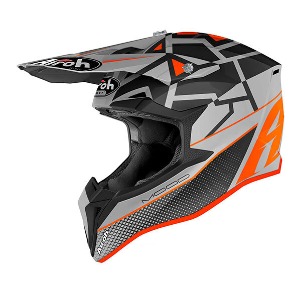 Aggressive Grafik für den Airoh Wraap Mood Motocross Helm. Es enthält das innovative EPS-System mit doppelter variabler Dichte. Erhöhen Sie die Sicherheitsstandards wie bei einem High-End-Helm.
