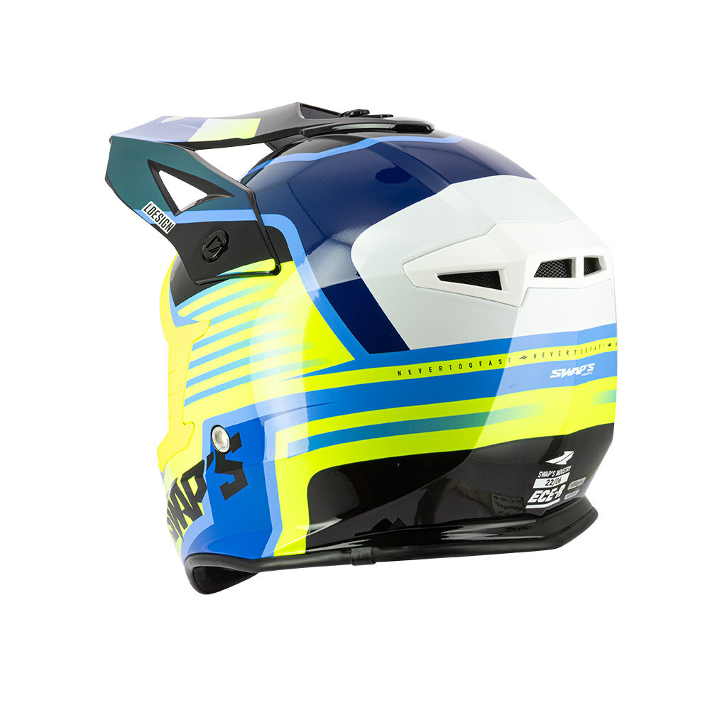 Der neue Cross-Casque aus Kalifornien "BLUR" von SWAP'S wird niemanden unberührt lassen, sein Design, seine Form und Farben stammen direkt aus den renommiertesten Meisterschaften der Welt: Supercross und Motocross US.