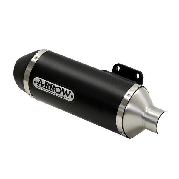Arrow Urban Silent-Auspuff aus dunklem Aluminium, entwickelt, um den Gasaustritt frei von Turbulenzen zu optimieren.