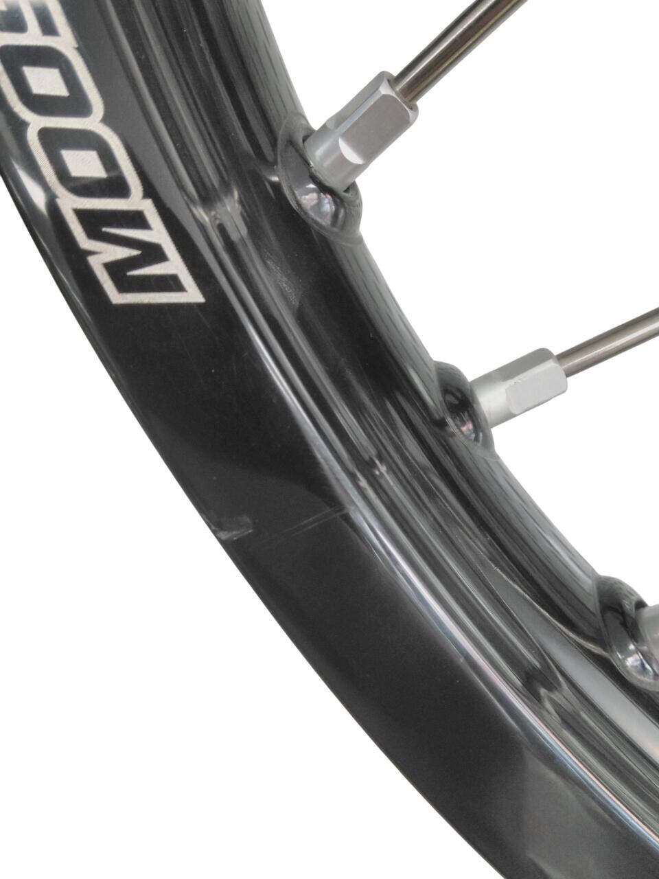 - Geschmiedete 7075-T6 Aluminium-Speichennippel mit Nylock-Gewinde für optimale Speichenspannung.