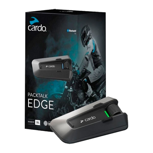 Cardo Intercom PackTalk Edge -Modell, die neue Generation von Kommunikationssystemen für Motorradfahrer, mit verbessertem Design, neuester Bluetooth-Technologie und JBL-Sound. Die beste Technologie auf dem Markt für Gegensprechanlagen mit Schnellladung und Geräuschunterdrückung sowie vielen anderen Funktionen.