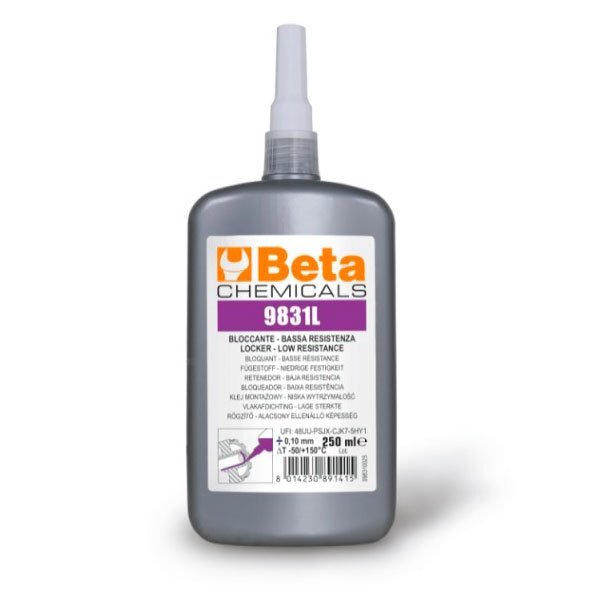 Anaerober Kleber Beta 9831L von 250gr mit einem geringen Widerstand für die dauerhafte Fixierung von Teilen, dieser Kleber, wenn es seine Demontage mit Handwerkzeugen ermöglicht