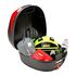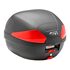 Neuer kompakter Kofferraum Givi B29N2, mit Platz für einen Helm und mit universellem Befestigungssystem, in Schwarz mit roten oder silbernen Reflektoren.