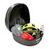 Neuer kompakter Kofferraum Givi B29NT2, mit Platz für einen Helm und mit universellem Befestigungssystem, in Schwarz mit roten oder silbernen Reflektoren.