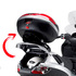 Der Grill ist in diesem klappbaren hinteren Adapter enthalten. Die hintere Stütze für das Topcase. Durch das Herunterklappen können Sie den Motorradstiefel frei öffnen.