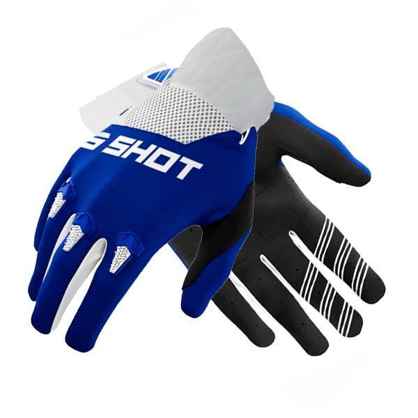 Shot Motocross-Handschuhe, High-End zum günstigsten Preis. Neuer taillierter Schnitt, Neopren-Bündchen und Lycra-Verstärkung zwischen den Fingern, um die perfekte Passform und optimale Kontrolle zu erreichen.