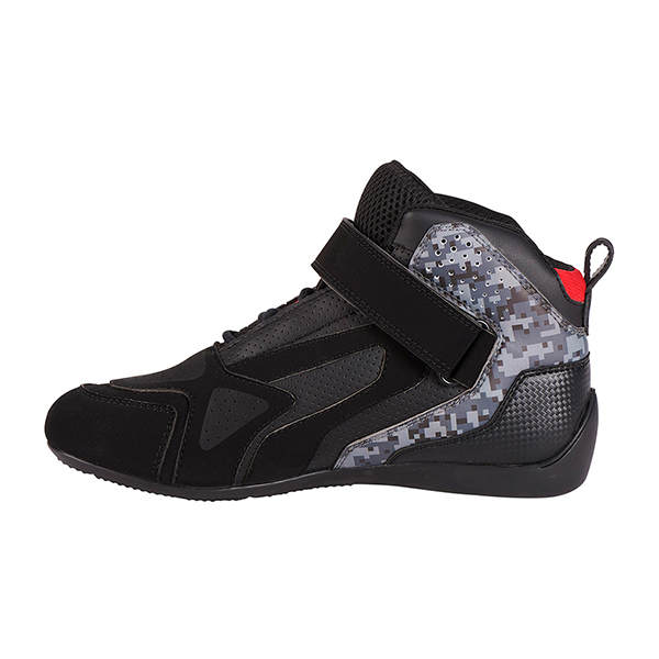 Sommerschuhe im urbanen Stil für Motorrad und Walking Furygan (Halbzeit). Verschlusssystem mit Schnürsenkeln und Klettverschluss, inklusive Riemen, der die Schnürsenkel am Stiefel hält.