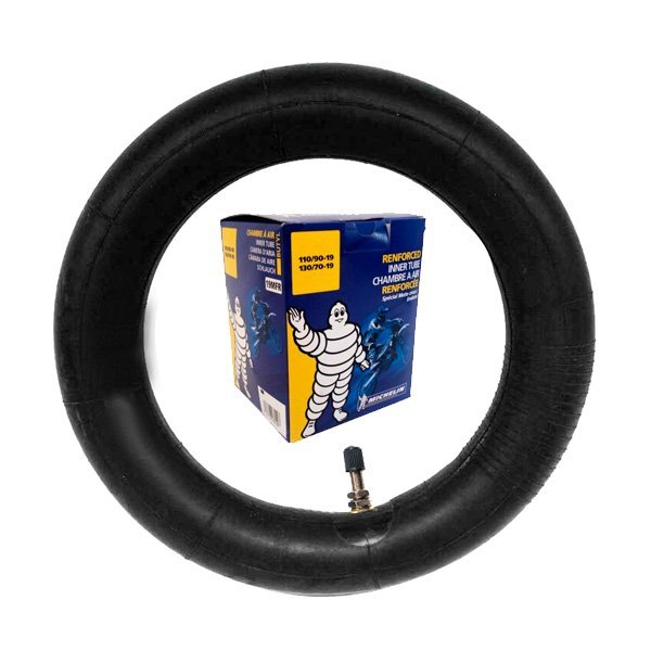 Michelin präsentiert seine enduro -spezifische 19MFR - Luftkammer mit geradem Ventil Typ TR4. Dieser Motorradraum besteht aus hochwertigem, verschleißfestem Butyl und verbessert die Leistung bei gleichzeitiger Beibehaltung der Elastizität bei verschiedenen Wetterbedingungen.