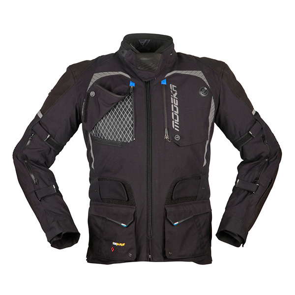 Polyvalente Modeka Tacoma III Cordura-Jacke , die die atmungsaktive und abnehmbare Humax- Membran, die 100% wasserdicht und 100% winddicht ist, perfekt integriert. Es enthält auch versteckte Mesh-Einsätze unter den Vordertaschen für hervorragende Atmungsaktivität und Körpertemperaturmanagement. Dank seiner Air-Vent- Reißverschlüsse </ strong> vorne und mit seinen breiten Auszügen hinten werden Sie diese abenteuerliche Jacke sowohl im Stadt- als auch im Überlandverkehr genießen.