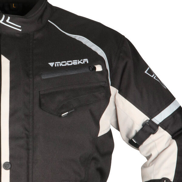 Vielseitige und funktionelle Modeka Tarex Cordura-Jacke. Genießen Sie diese 2-in-1-Touren- / Abenteuerjacke aus 600-D-Polyester und mit doppelter Verstärkung in den Aufprallzonen.