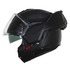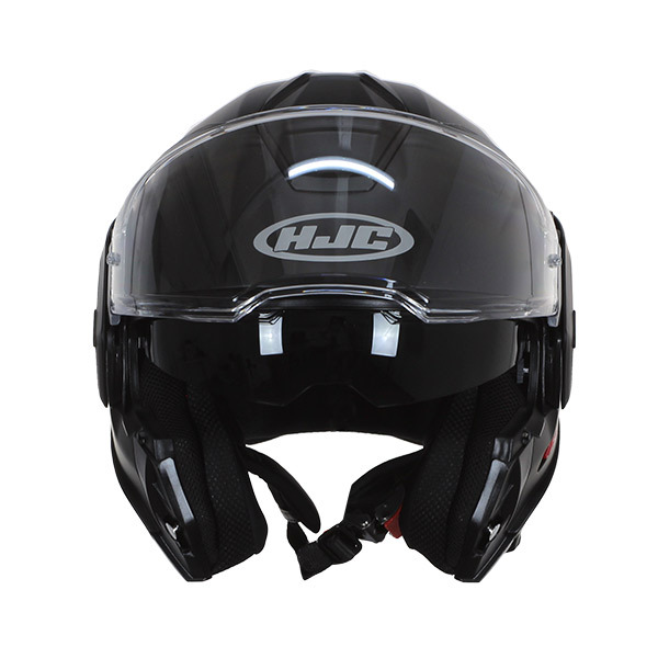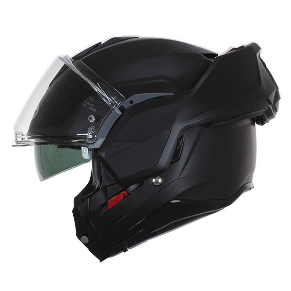 Der modulare Sporthelm HJC i100 verfügt über eine Innenpolsterung, eine integrierte Sonnenblende, die von außen bedient werden kann, ein abnehmbares Visier und eine Standard-Pinlock-Scheibe. Veranlagung zur Installation des SMART HJC Bluetooth-Kommunikationssystems (nicht im Lieferumfang enthalten).