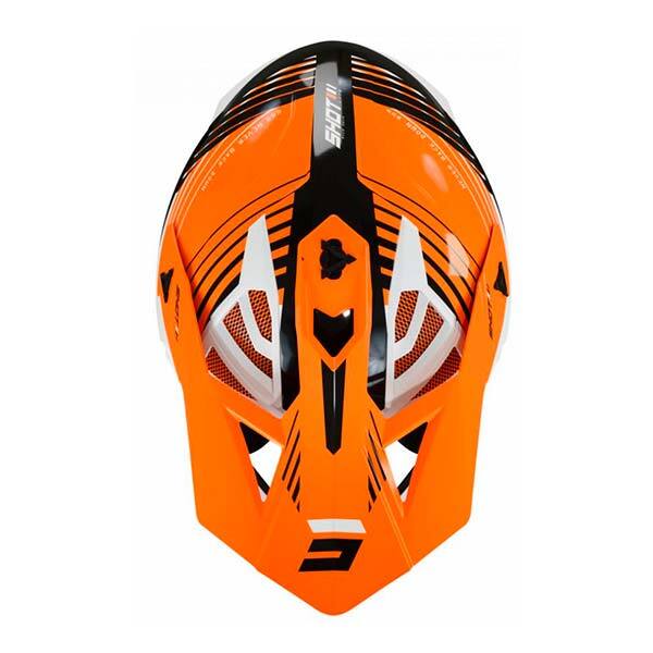 Motocros Shot Helm Er enthält Belüftungskanäle im oberen Teil des Kopfes, im Kinn- und Hinterkopfbereich mit herausnehmbarem und waschbarem Innenfutter. Mach dich bereit für die neue Motocross-Saison 2022