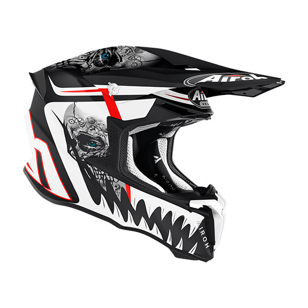 Offroad-Enduro-Motocross-Helm von Airoh, homologiert und mit den besten Innovationen ausgestattet. Hergestellt aus hochbeständigem thermoplastischem HRT-Harz mit verbesserter Aerodynamik.