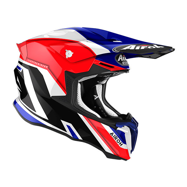 Aggressiver Motocross-Helm von Airoh, der Twist 2.0 Shaken mit dem „Airoh Sliding Net“-System, das das Gleiten des Innenfutters im Falle eines Sturzes erleichtert. Innovatives EPS-System mit doppelter Dichte, um eine bessere Passform zu gewährleisten. Doppel-D-Verschlusssystem.