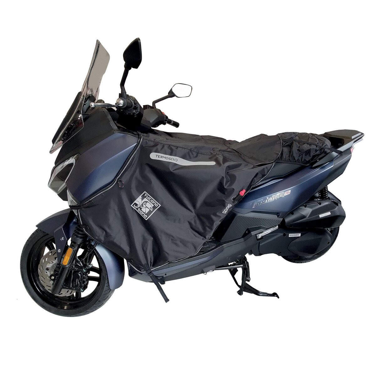 Wasserdichte Beinabdeckungen des italienischen Herstellers Tucano für das Motorrad Sym Joyride 300 ab 2022, die beweisen, dass man auch bei Kälte mit dem Roller fahren kann. Ref: R241X