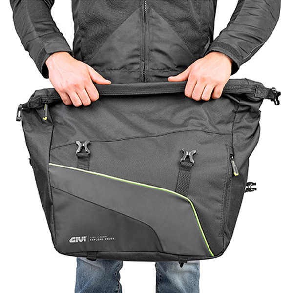 Seitentasche für Givi EA133 25L Motorrad mit Riemen, die unter dem Sattel platziert werden müssen, damit die Satteltaschen mit einem Doppelringsystem befestigt werden können.