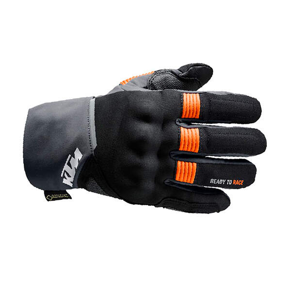 Innovativer KTM-Hochleistungs-Tourenhandschuh fürs Reisen, geeignet für das ganze Jahr und bei jedem Wetter. Sie verfügen über Protektoren an Fingern und Knöcheln für mehr Sicherheit sowie Verstärkungen im Handflächenbereich.