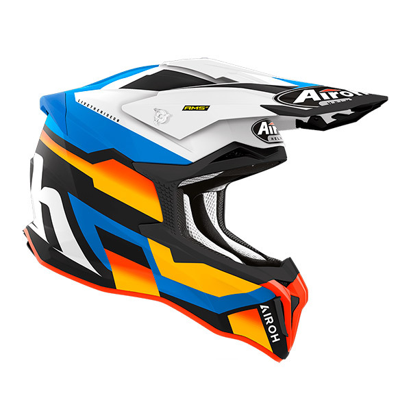 Vollständig homologierter Airoh-Motocross-Helm, ausgestattet mit seinem revolutionären AMS2-System, das die Ableitung von Rotationsenergie im Falle eines schrägen Aufpralls ermöglicht.