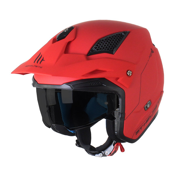 Der Motorradhelm MT District SV Solid verfügt über eine interne Sonnenblende mit einem neuen verstellbaren System in 3 verschiedenen Positionen. Der Benutzer kann die Höhe, auf die die Brille abgesenkt wird, regulieren und so an verschiedene Gesichtstypen anpassen. Dank dieses innovativen Systems und der größeren Größe des Sonnenschutzes ist es möglich, den Lichteinfall zu minimieren und die Belastung der Augen während der Fahrt zu reduzieren.An.