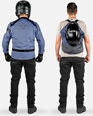 Jacke mit Umbausystem, für den Sommer in einem Rucksack, dank des patentierten Systems Confold™ für Motorrad und Scooter, Macna Torido Air grau. Stecke dein Helm in die Helmhalterung ein und lege deine Handschuhe in den Rucksack, um eine Händchenfreiheit auf deinem Motorrad zu genießen. Ref.165.362