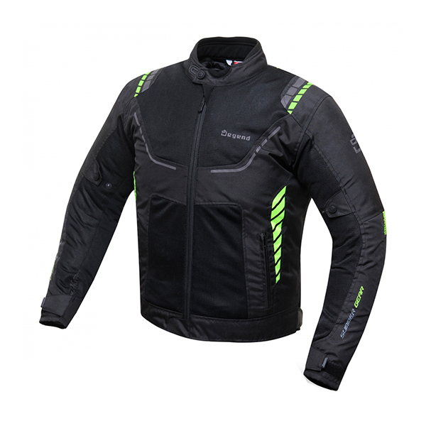 Die Marke Degend präsentiert eine gut belüftete und sehr leichte Motorradjacke. Hergestellt aus dm-Hartschale aus Nylon (330D), die Luft durchlässt und Wärme ableitet.