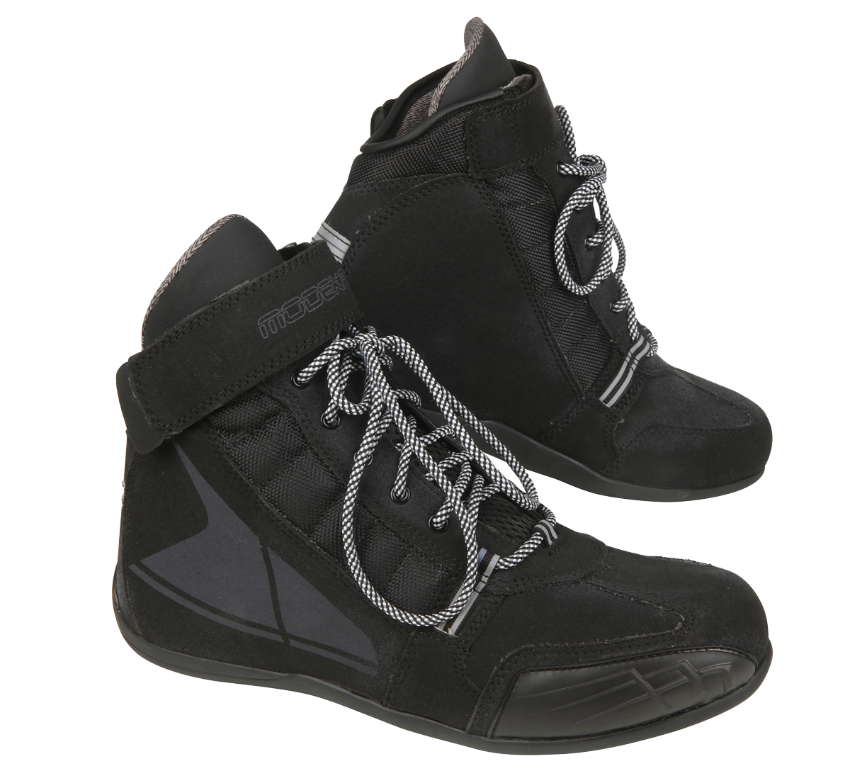 Das deutsche Unternehmen Modeka mit mehr als 70 Jahren Erfahrung präsentiert diese neuen kurzen Sommer-Motorradstiefel Modeka Kento. Sie haben spezielle Verstärkungen im Knöchel- und Zehenbereich, die für Liebhaber von zwei Rädern unerlässlich sind, die Sicherheit, Komfort und große Stabilität suchen. EN 13634: Genehmigung 2015.