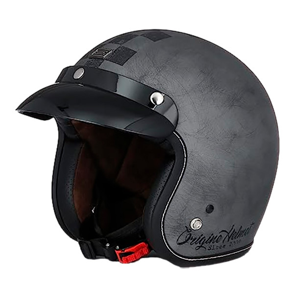 Die italienische Marke Origine präsentiert ihren Motorradhelmjet, der in den Werken der Marke in Pistoia (Italien) hergestellt wird, sichere und bequeme Helme sowie farbenfrohe und originelle Helme, mit denen Sie niemals desapercibido fahren. Verlieren Sie den Motorradhelmjet Origine Primo Scacco (abgenutztes Metall) enthält 5 Halterungen zur Anpassung von Zubehör wie Blasensieben und ein Lederband auf der Rückseite zur Befestigung der Brillevon Flieger so häufig in der Cafe Racer Welt.