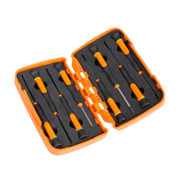 Beta- Box mit einer Auswahl von 8 Mikroschraubendrehern mit Farbcode, die Sie ohne Zweifel aus mehr als einem Problem herausholen. Es ist das Wesentliche in jeder Motorradwerkstatt und Garage.