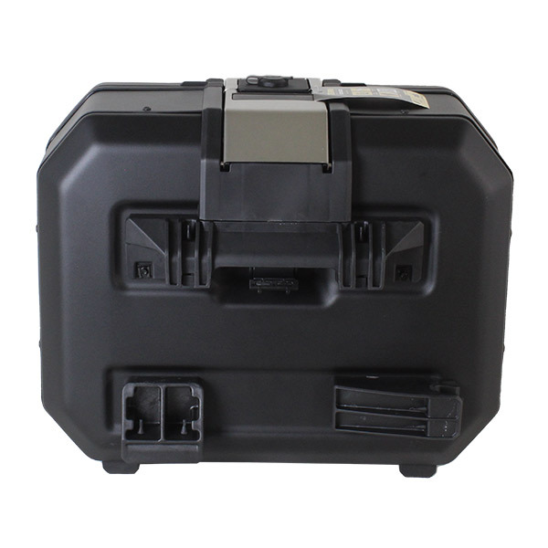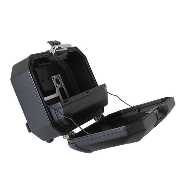 Ein robuster Motorradkoffer aus hochwertigem, verstärktem Aluminium, der die Gegenstände im Inneren vor Regen oder Schnee schützt.